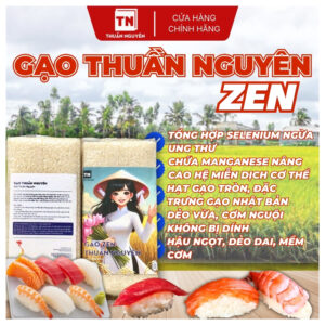 Gạo Zen Thuần Nguyên là dòng gạo cao cấp được sản xuất từ giống lúa Nhật Bản Japonica/DS1 – nổi bật với hạt tròn, mẩy, trắng tự nhiên, dẻo mềm, thơm thanh nhẹ. Được canh tác tại vùng đất phù sa màu mỡ miền Tây Việt Nam, Zen kết hợp hoàn hảo giữa tinh thần thanh tịnh, tối giản của Nhật và nghệ thuật trồng lúa truyền thống Việt Nam.